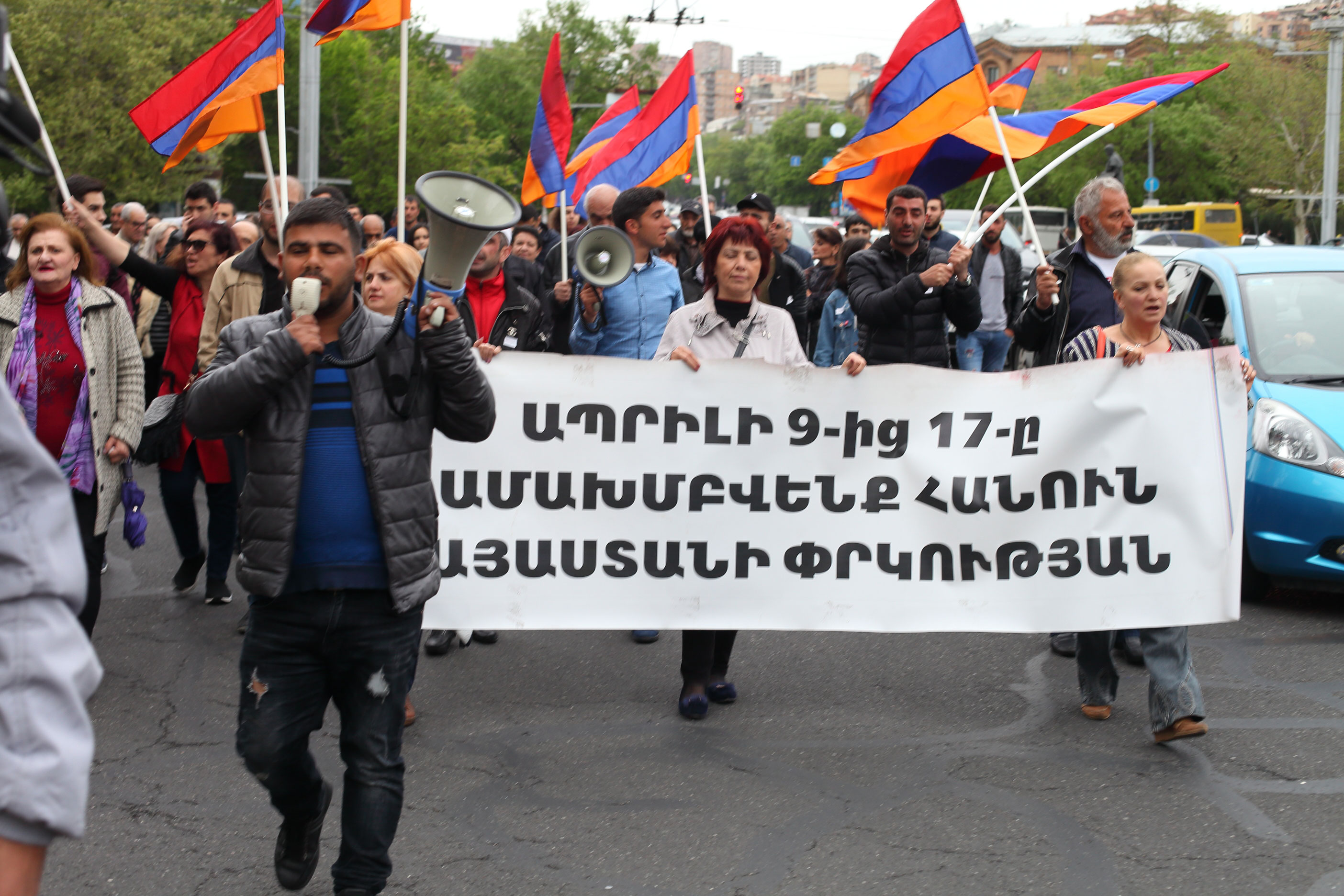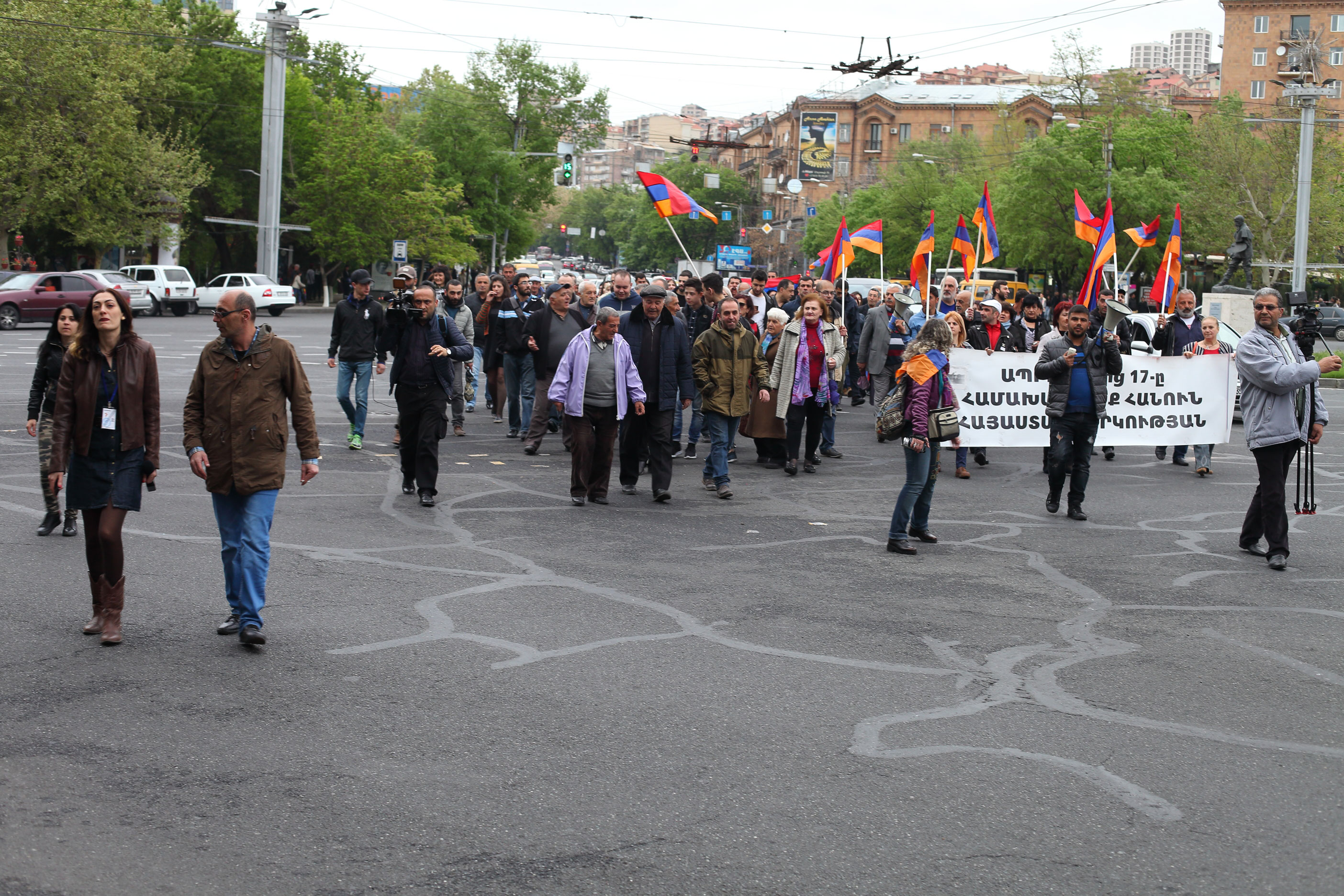 Լուսանկարիչ Ժոզեֆ Զաքարյանի ֆոտոշարքը պատմում է ապրիլի 13-ին մեկնարկած շուրջօրյա հանրահավաքում հայտնվելու մասին: Մարդիկ նստարաններով փակել են Սայաթ-Նովա-Մաշտոց փողոցների խաչմերուկը՝ Ֆրանսիայի հրապարակը: